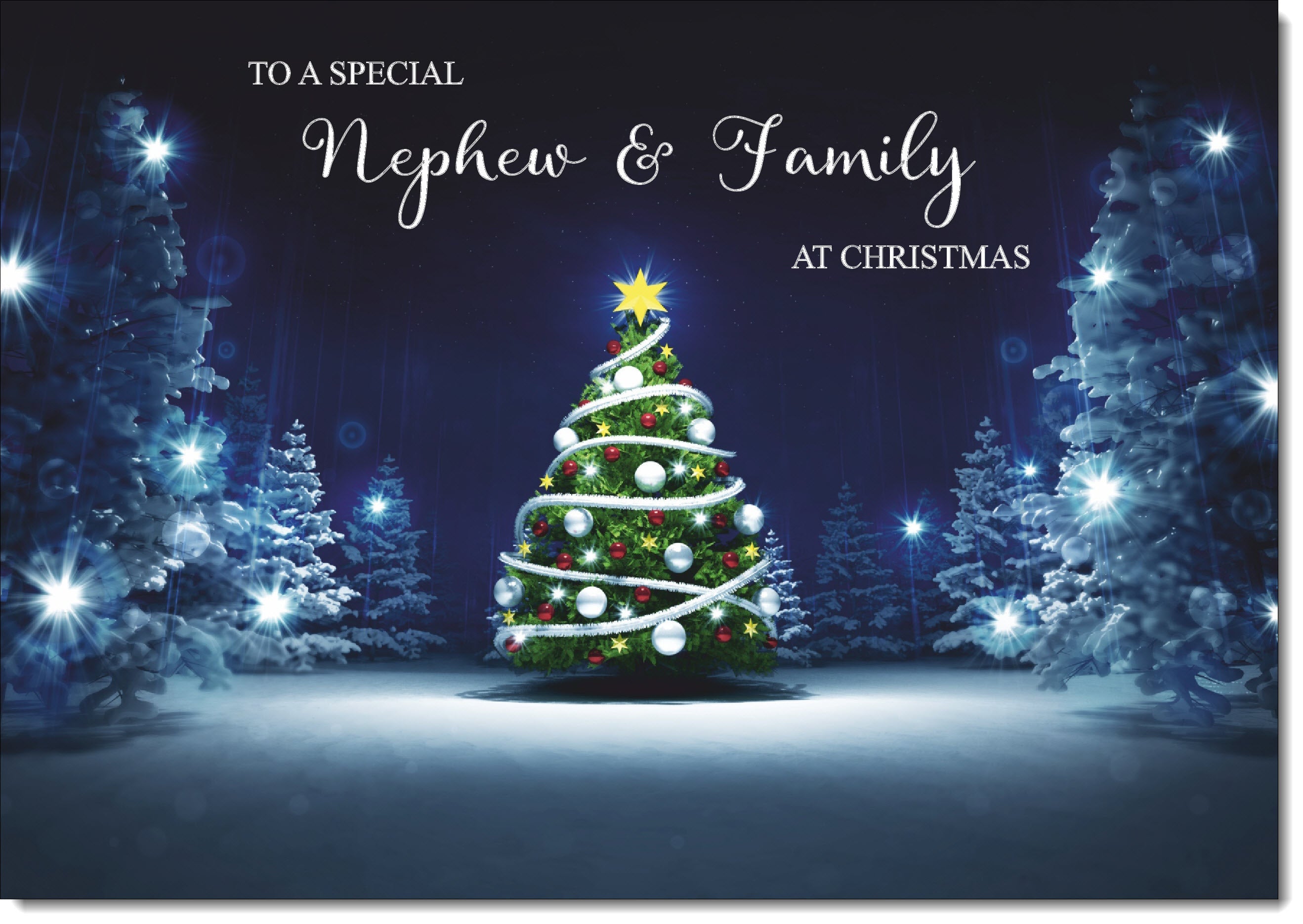 Nephew & Family Christmas Card Christmas Tree Lights in Dark Sky
