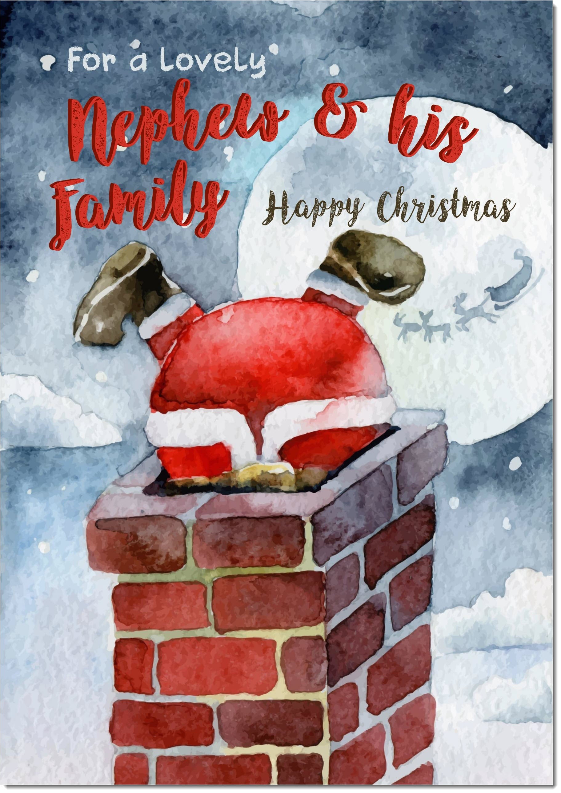 Nephew & Family Christmas Card Santa Stuck in the Chimney