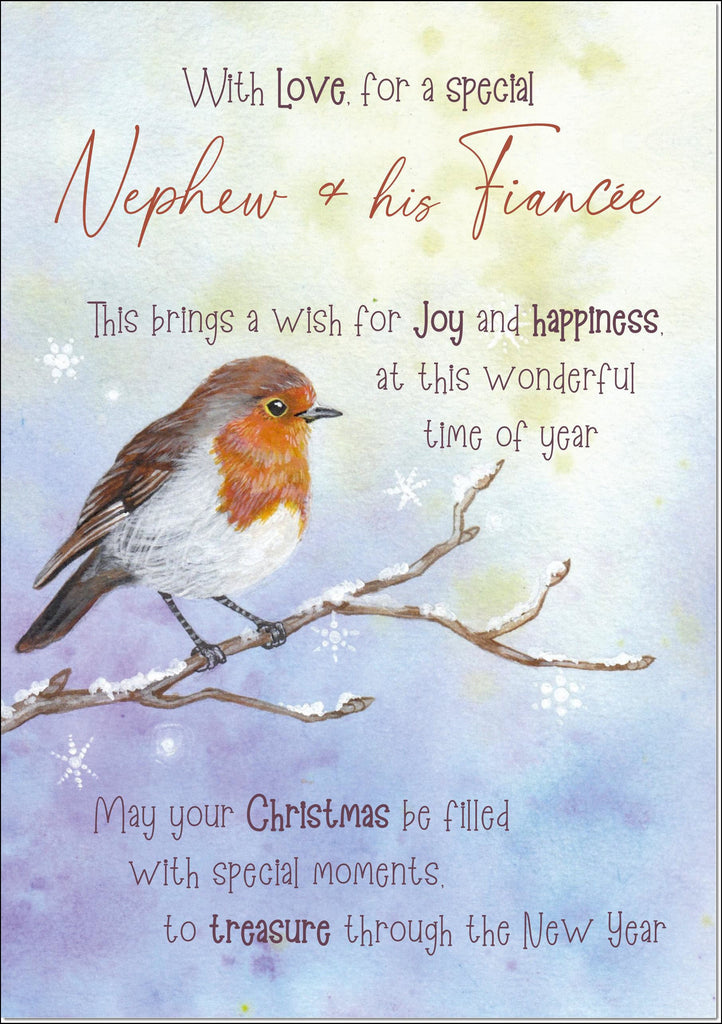 Nephew & Wife Christmas Card Robin in Winter Scene