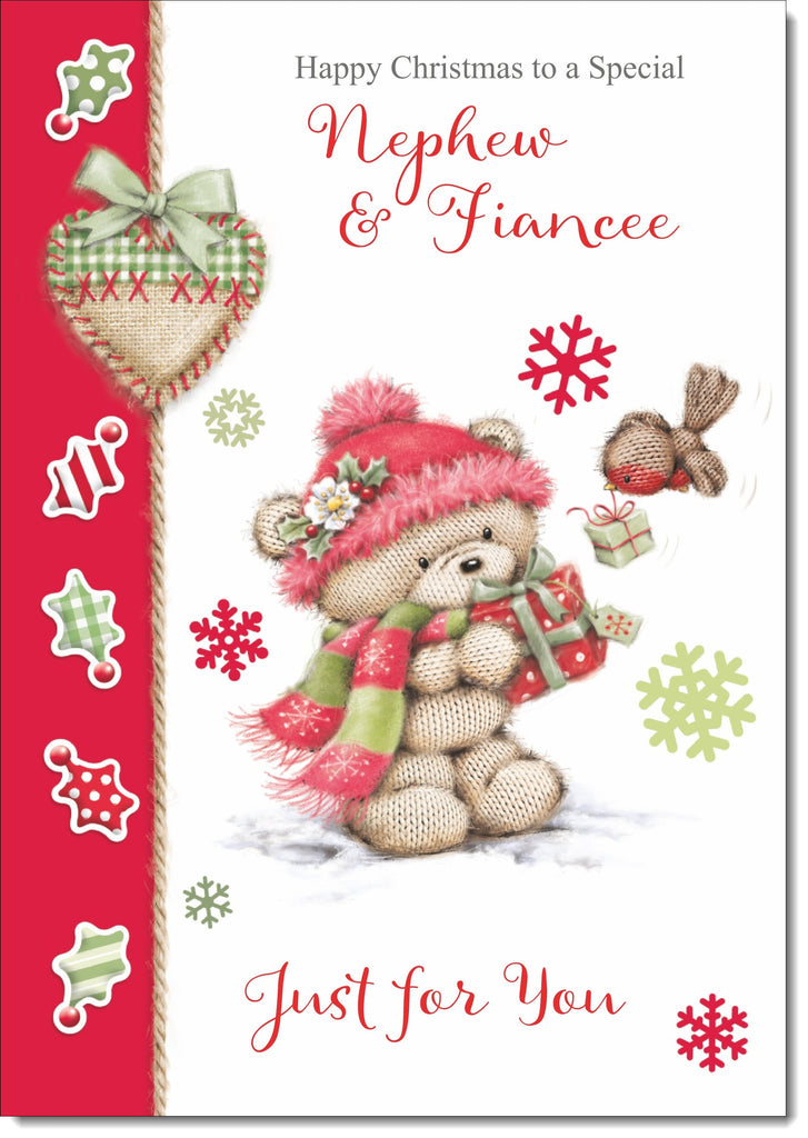 Nephew & Fiancee Christmas Card Cute Bear on Parcel