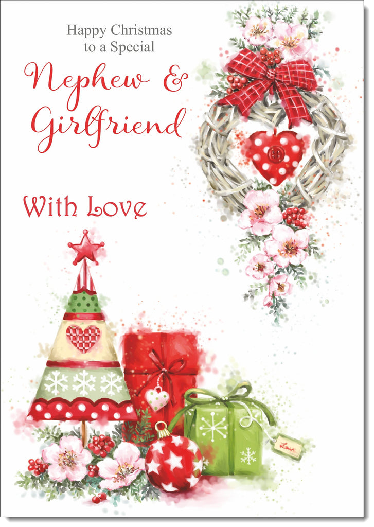 Nephew & Girlfriend Christmas Card Hanging Heart Decoration