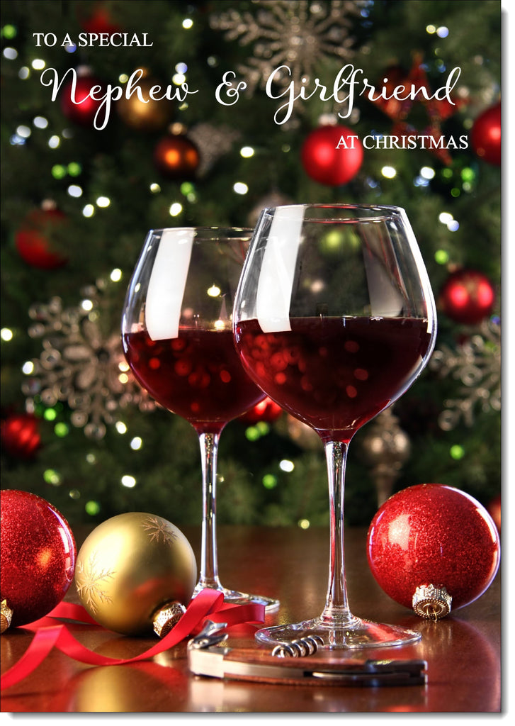 Nephew & Girlfriend Christmas Card Red Wine Glasses