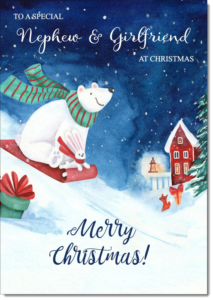 Nephew & Girlfriend Christmas Card Polar Bear on Sled