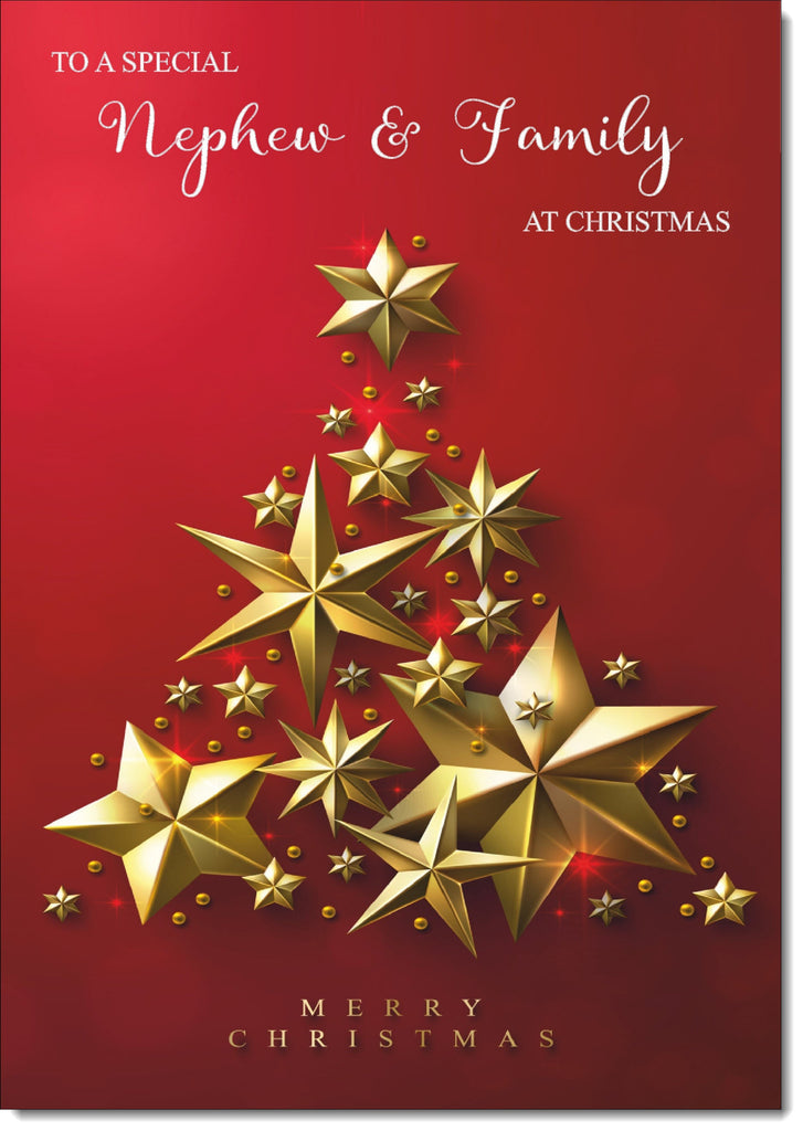 Nephew & Family Christmas Card Gold Star Christmas Tree