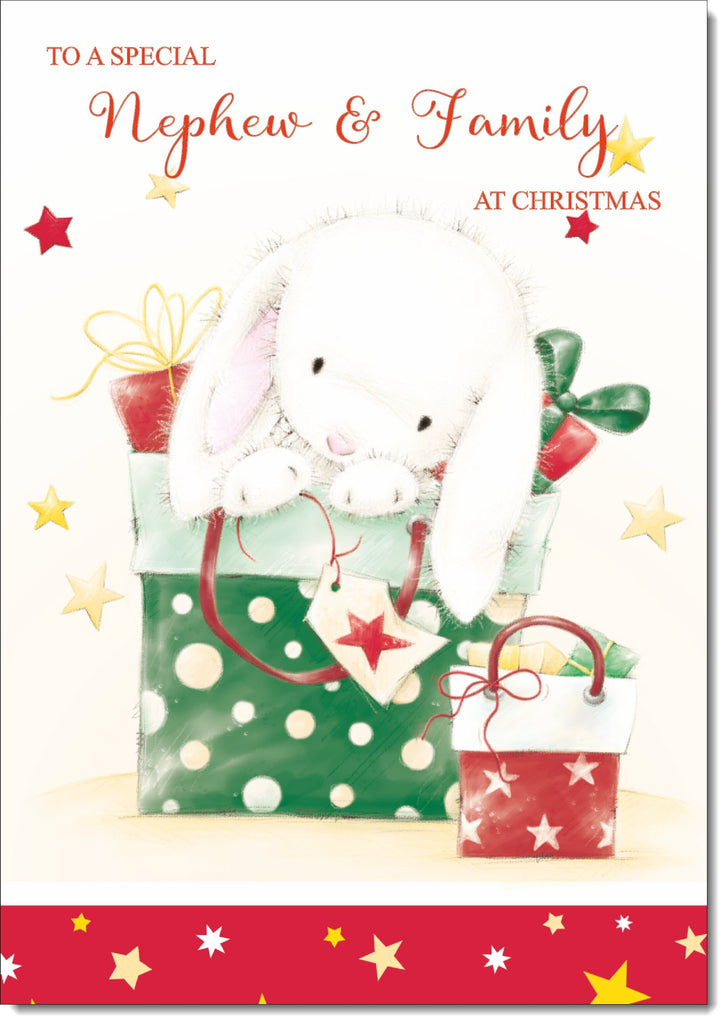 Nephew & Family Christmas Card Cute Rabbit with Parcels