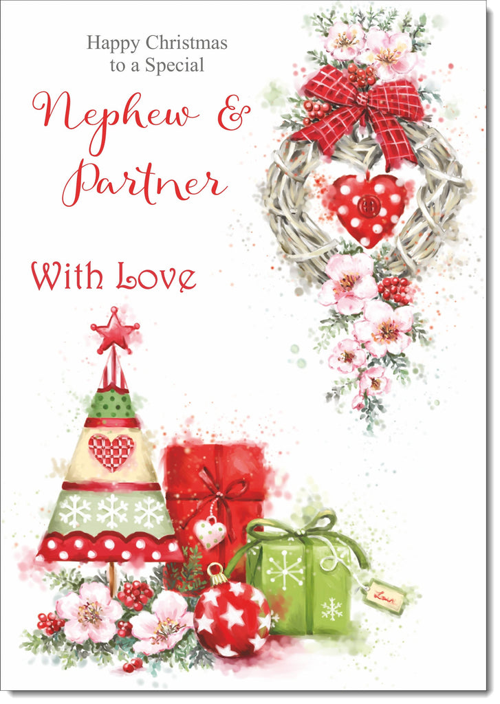 Nephew & Partner Christmas Card Hanging Heart Decoration