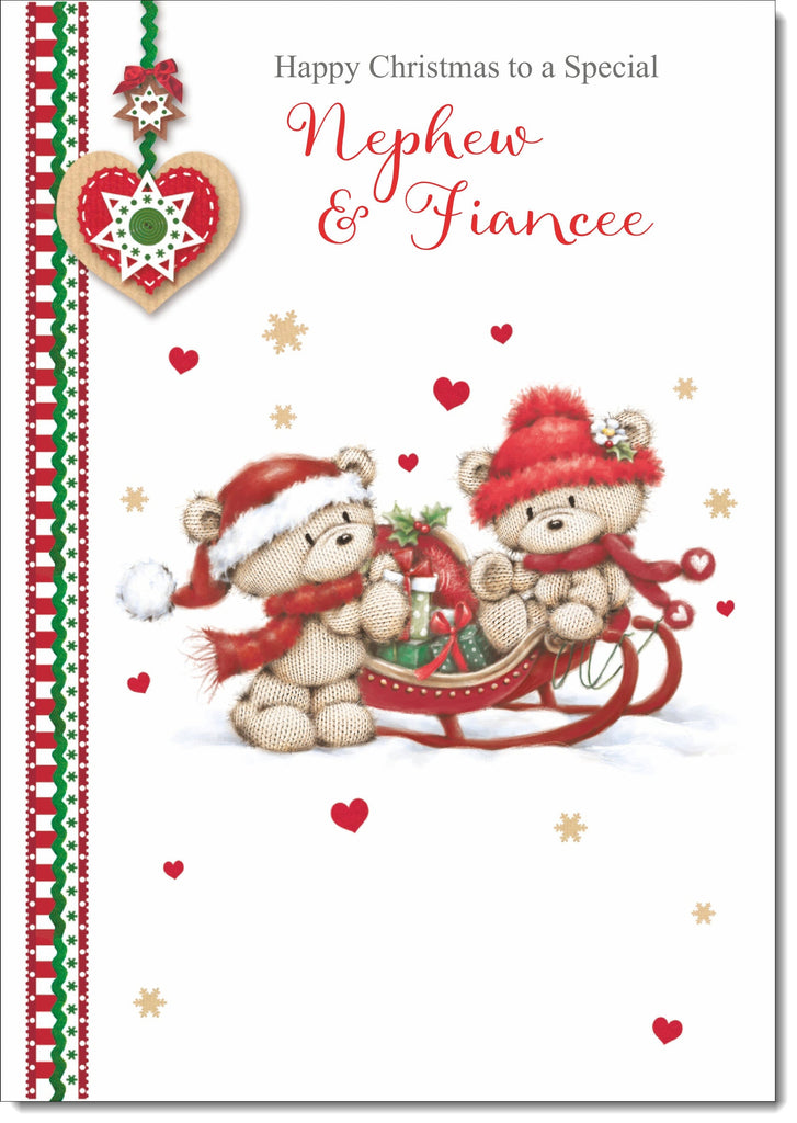 Nephew & Fiancee Christmas Card Two Cute Bears on Sled