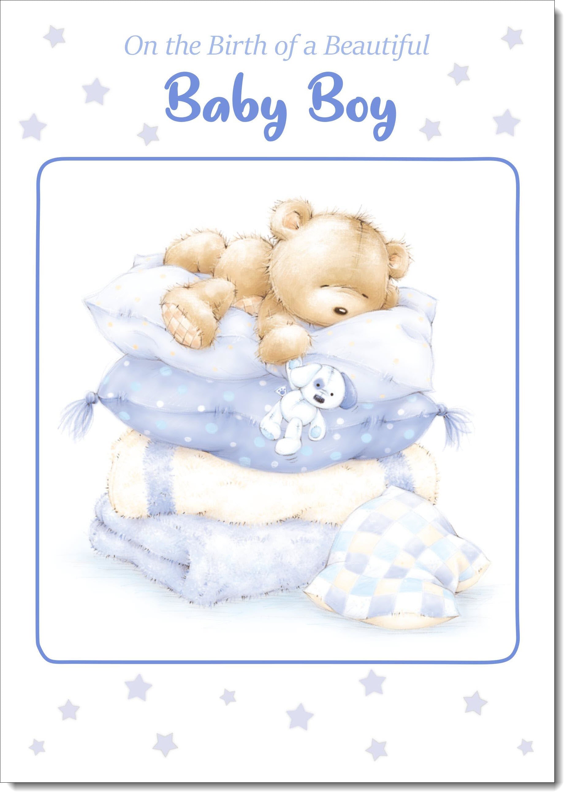 New Baby Boy Birth Congratulations Card Cute Teddy