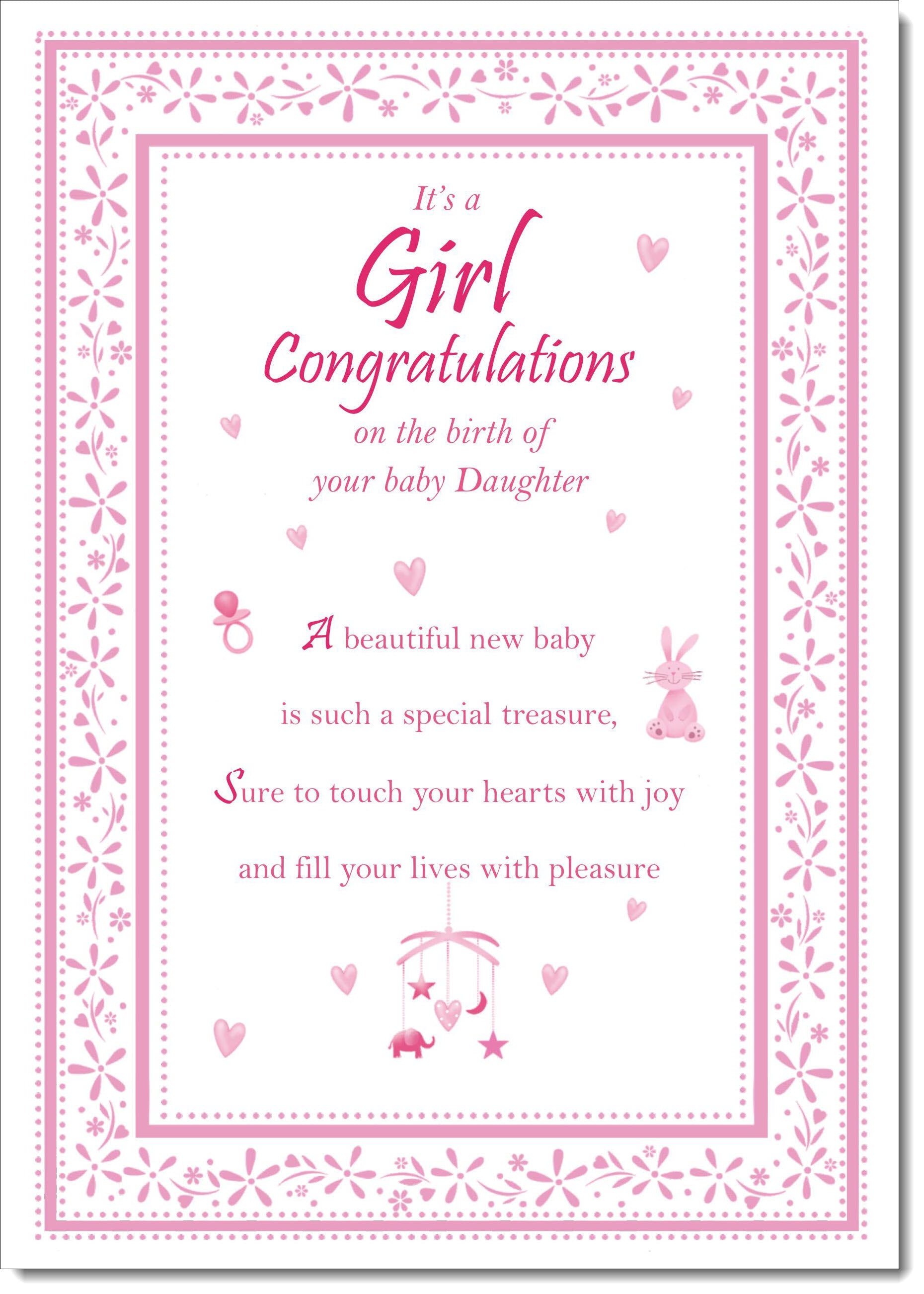 New Baby Girl Birth Congratulations Card Border