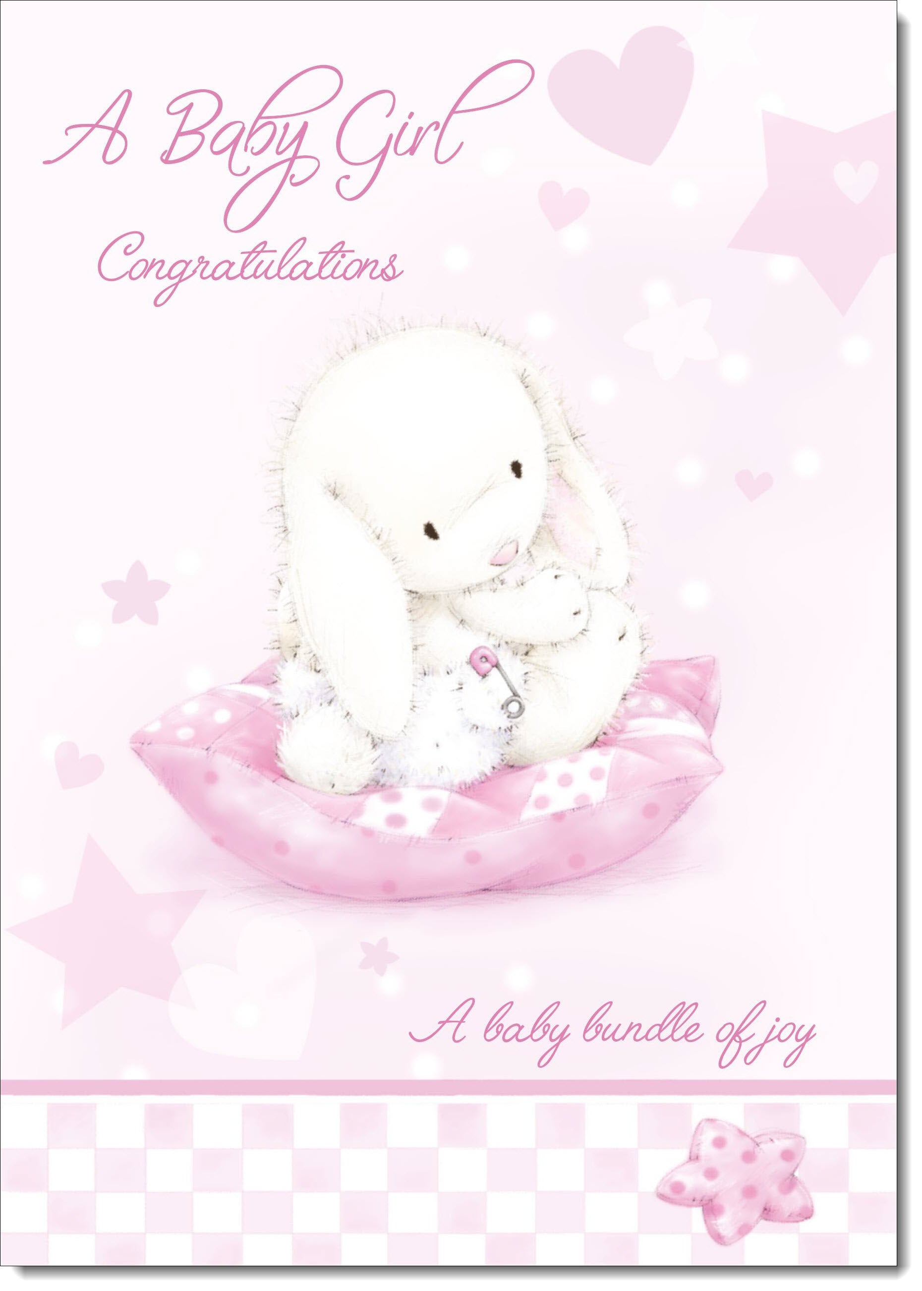 New Baby Girl Birth Congratulations Card Cute Rabbit