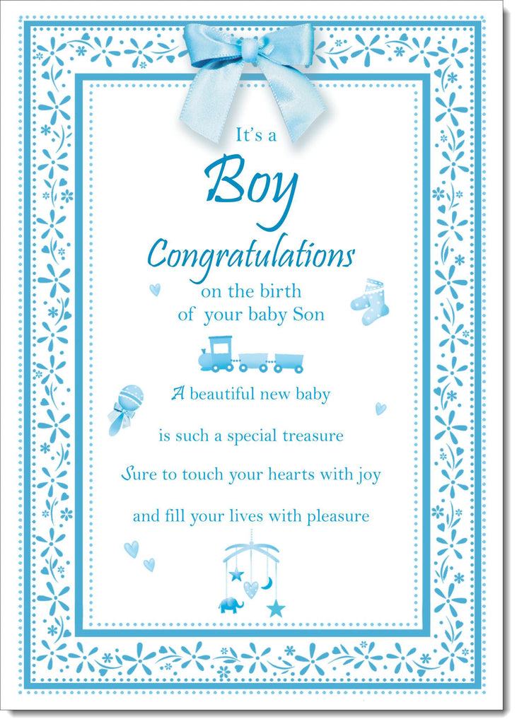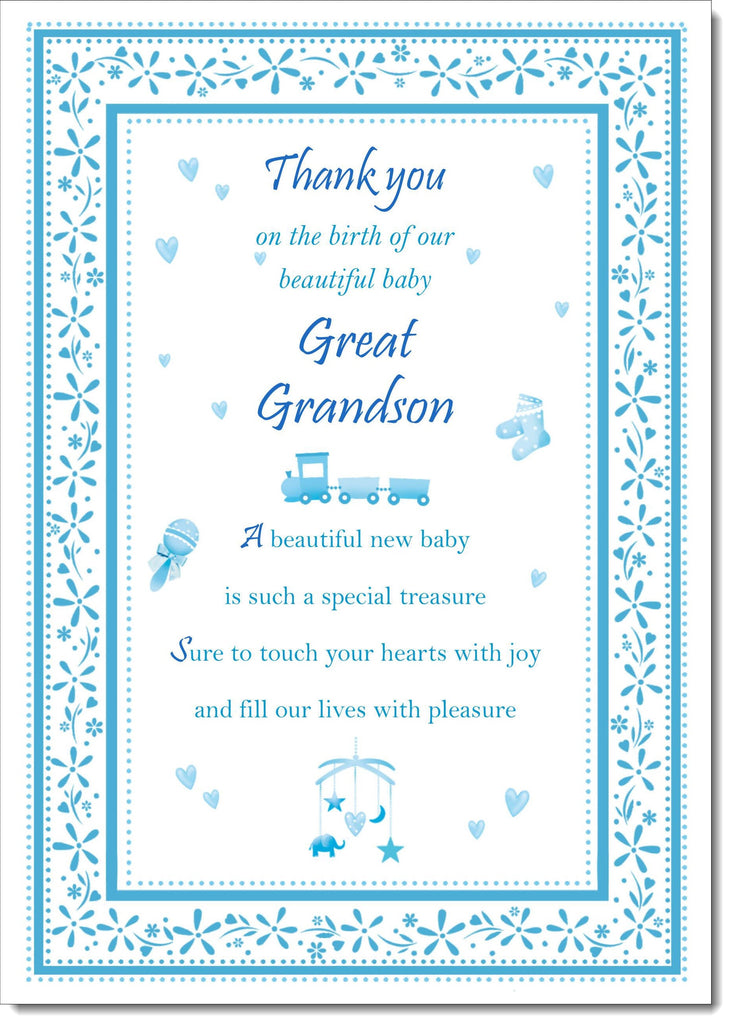 On The Birth Of Our Great Grandson New Baby Boy Congratulations Card Border