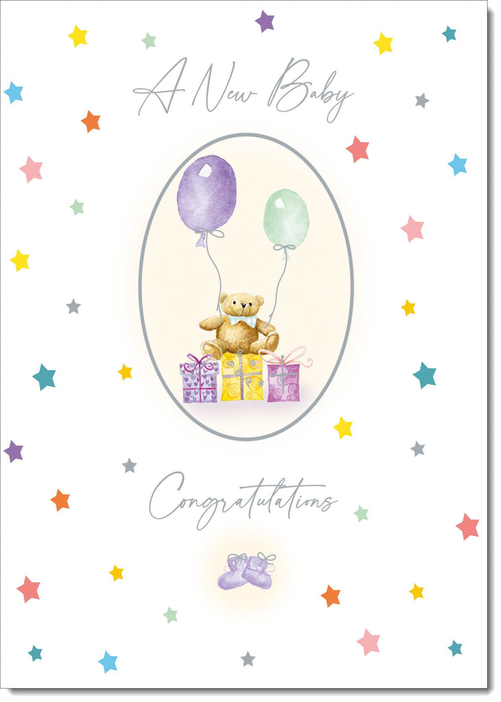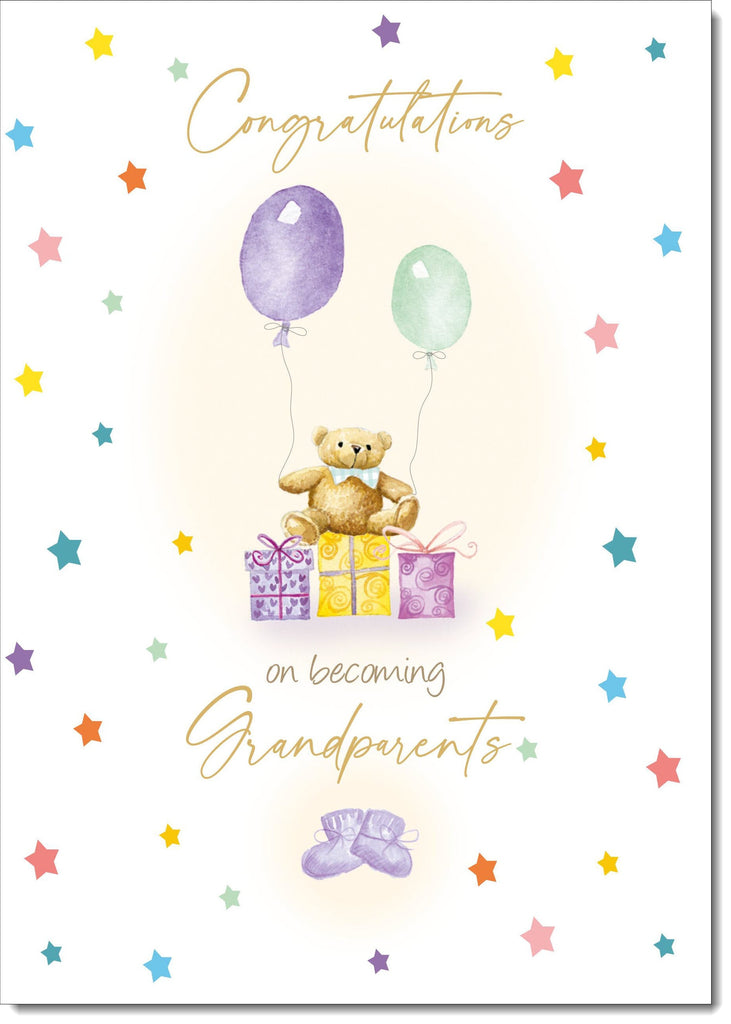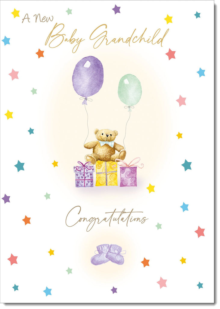 On The Birth Of Your Grandchild New Baby Congratulations Card Teddy and Presents