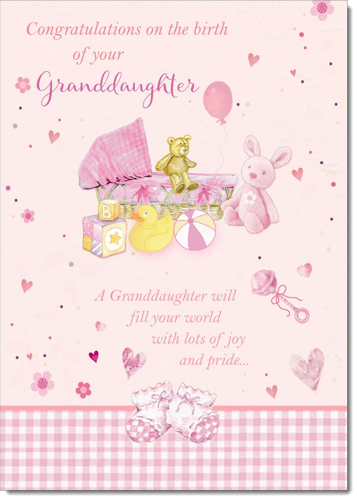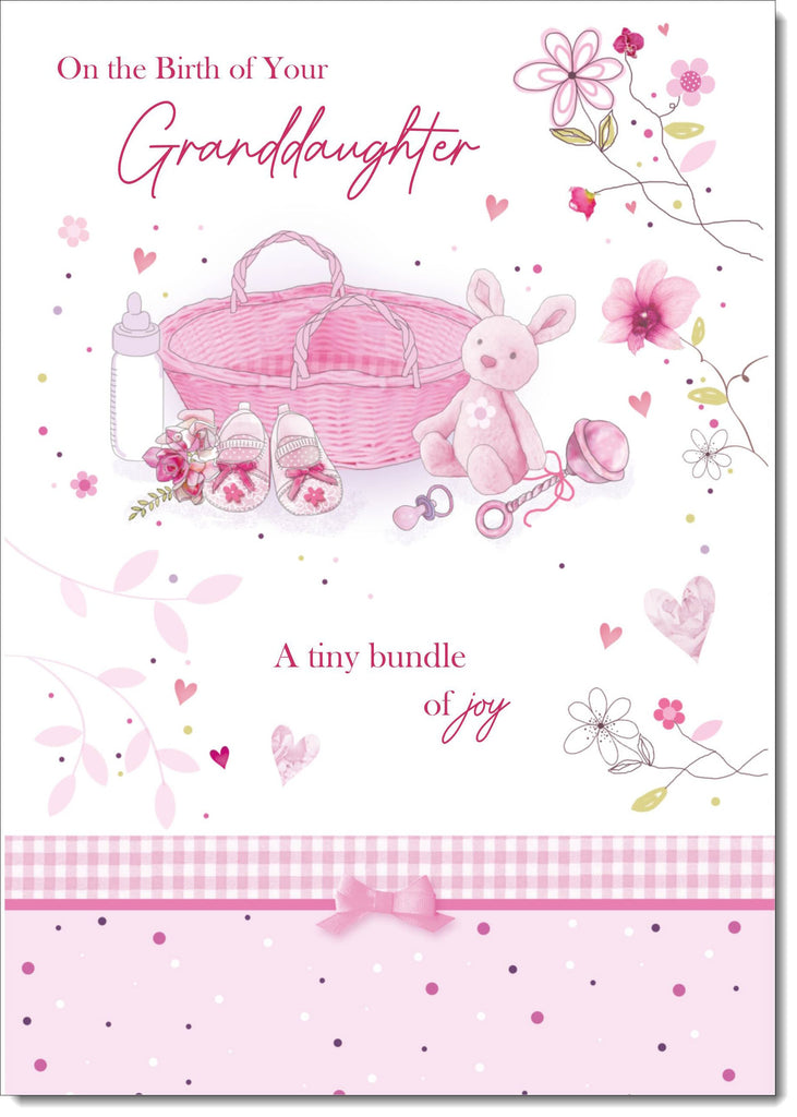 On The Birth Of Our Granddaughter New Baby Girl Congratulations Card Baby Basket