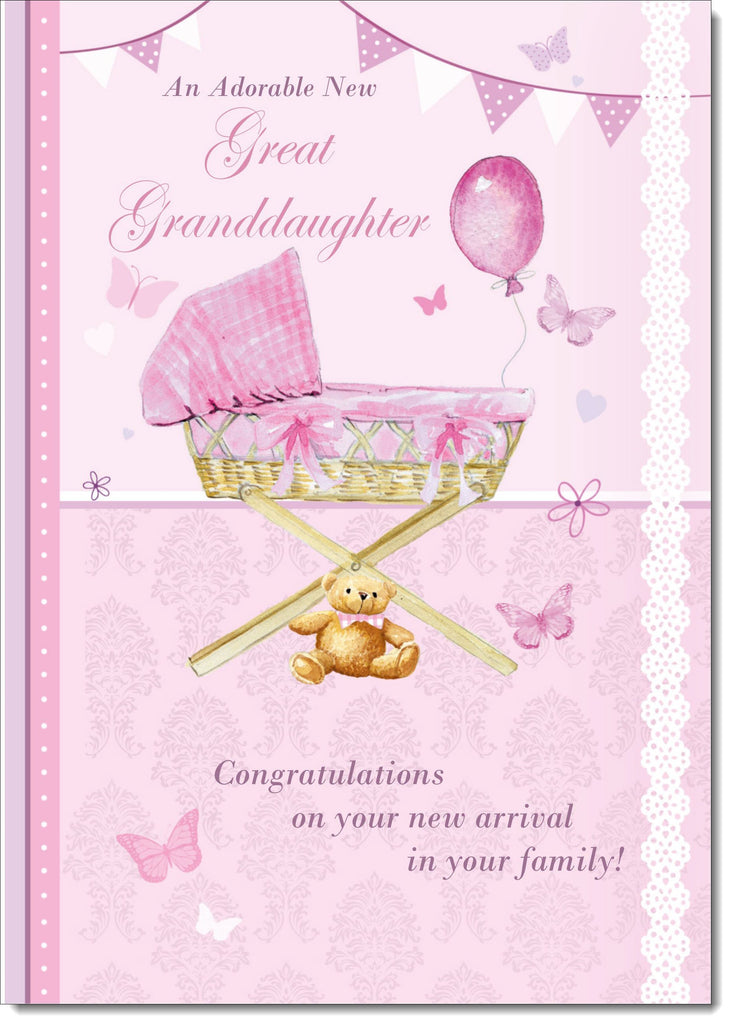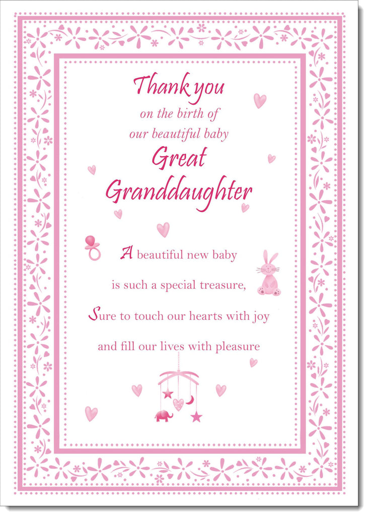 On The Birth Of Your Great Granddaughter New Baby Girl Congratulations Card