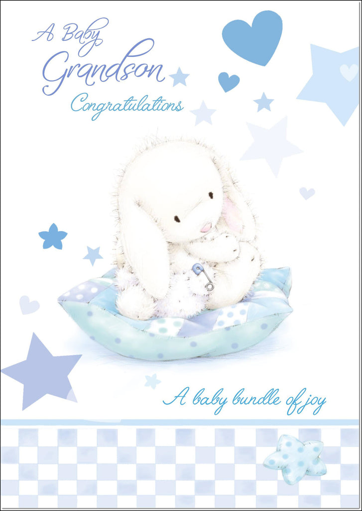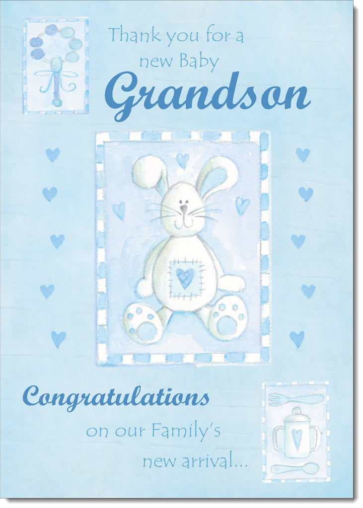On The Birth Of Your Grandson New Baby Boy Congratulations Card Toy Rabbit