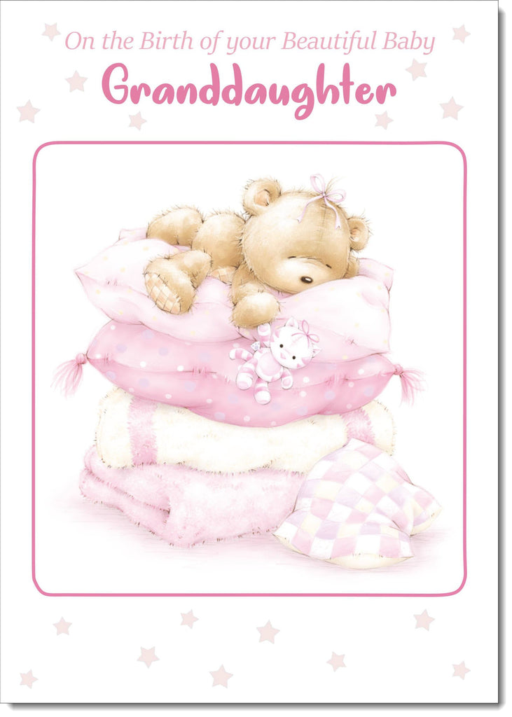 On The Birth Of Your Granddaughter New Baby Girl Congratulations Card Cute Teddy