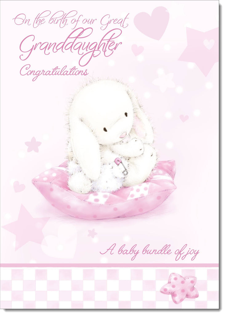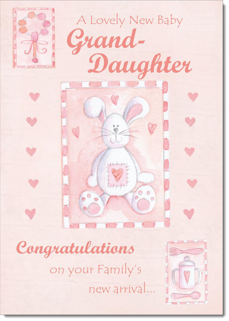 On The Birth Of Your Granddaughter New Baby Girl Congratulations Card Toy Rabbit