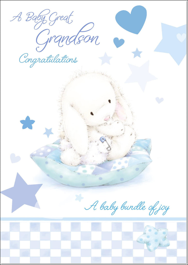 On The Birth Of Your Great Grandson New Baby Boy Congratulations Card Toy Rabbit