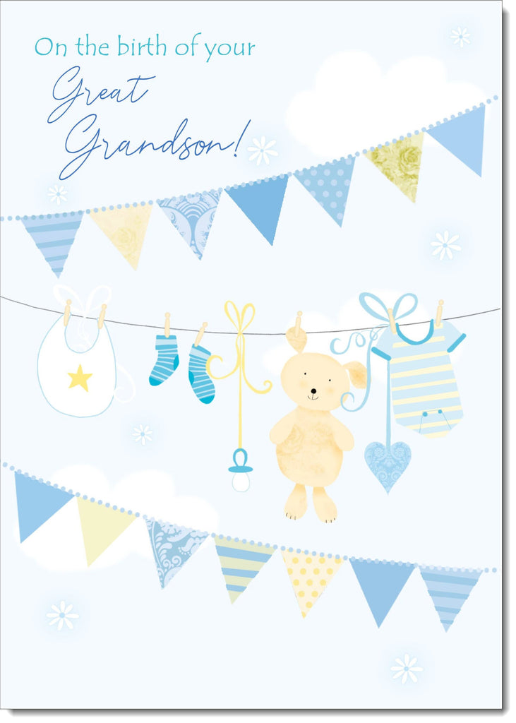 On The Birth Of Your Great Grandson New Baby Boy Congratulations Card Washline
