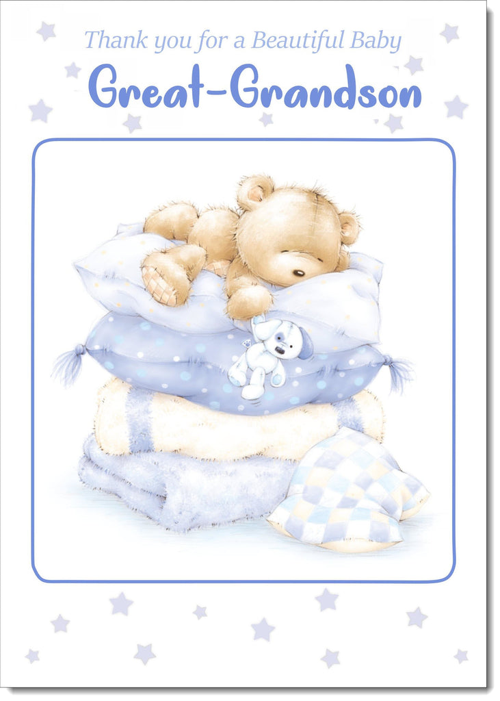 On The Birth Of Your Great Grandson New Baby Boy Congratulations Card Cute Teddy