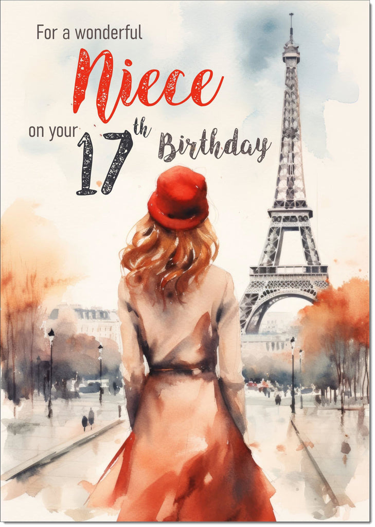 Niece 17th Birthday Card Age 17 Paris, Eiffel Tower