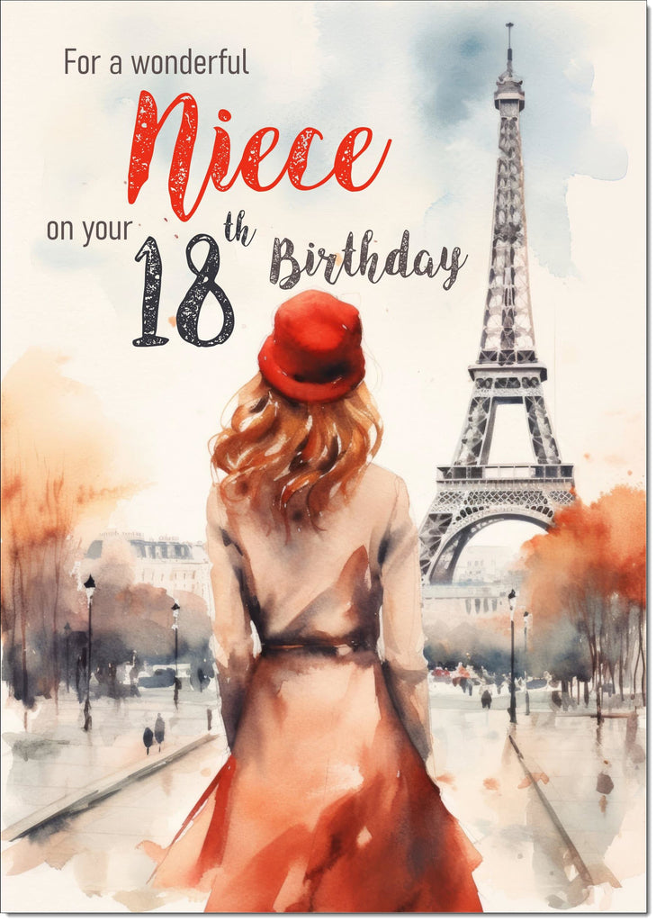 Niece 18th Birthday Card Age 18 Paris, Eiffel Tower