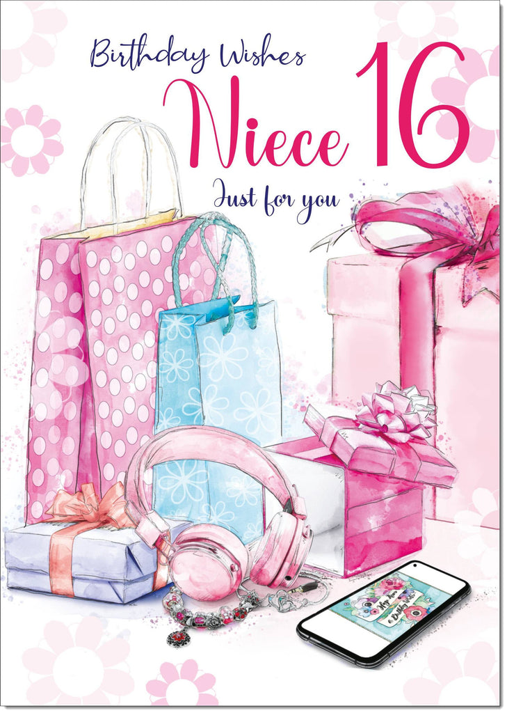 Niece 18th Birthday Card Age 18 Flower Bouquet and Present