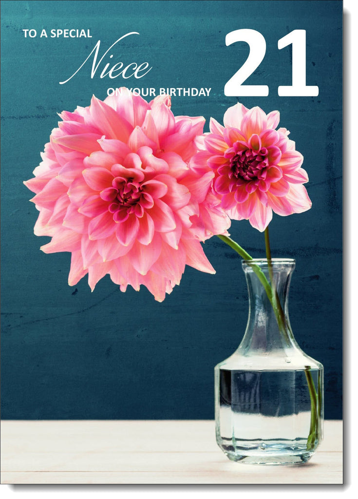Niece 21st Birthday Card Age 21 Large Pink Flowers