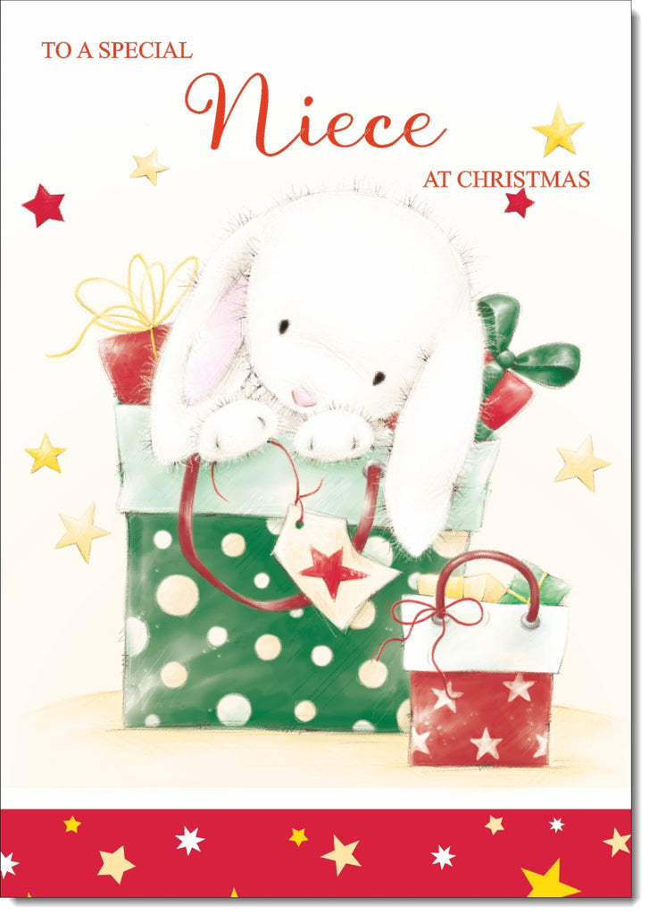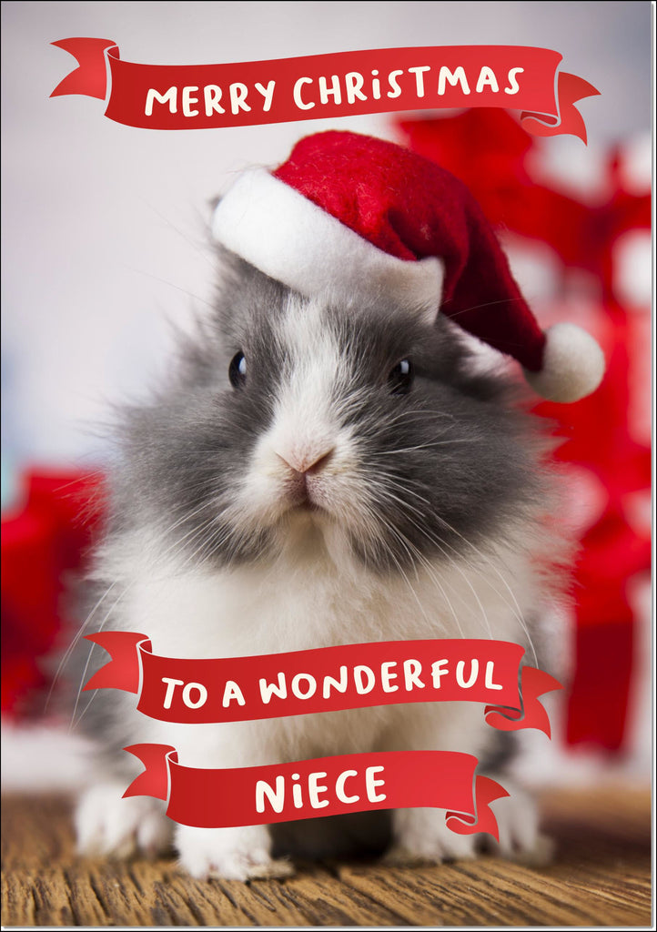 Niece Christmas Card Cute Santa Paws Rabbit Pet Christmas Hat