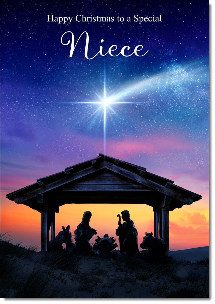 Niece Christmas Card Nativity Scene Evening Watercolour