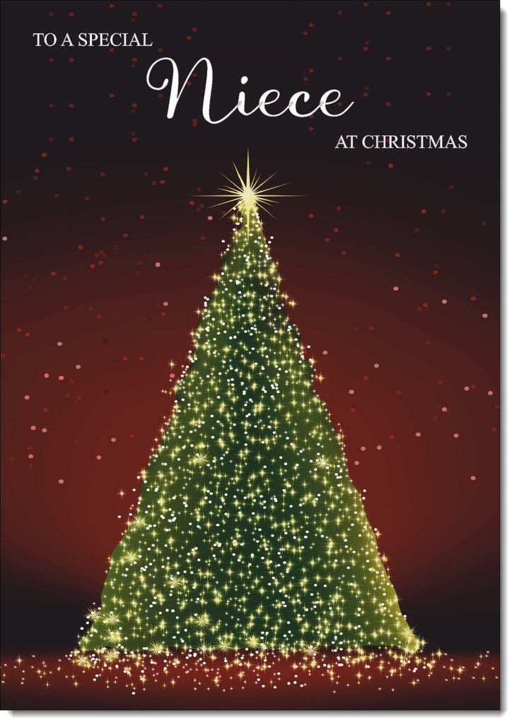 Niece Christmas Card Flamingo Christmas Tree Lights