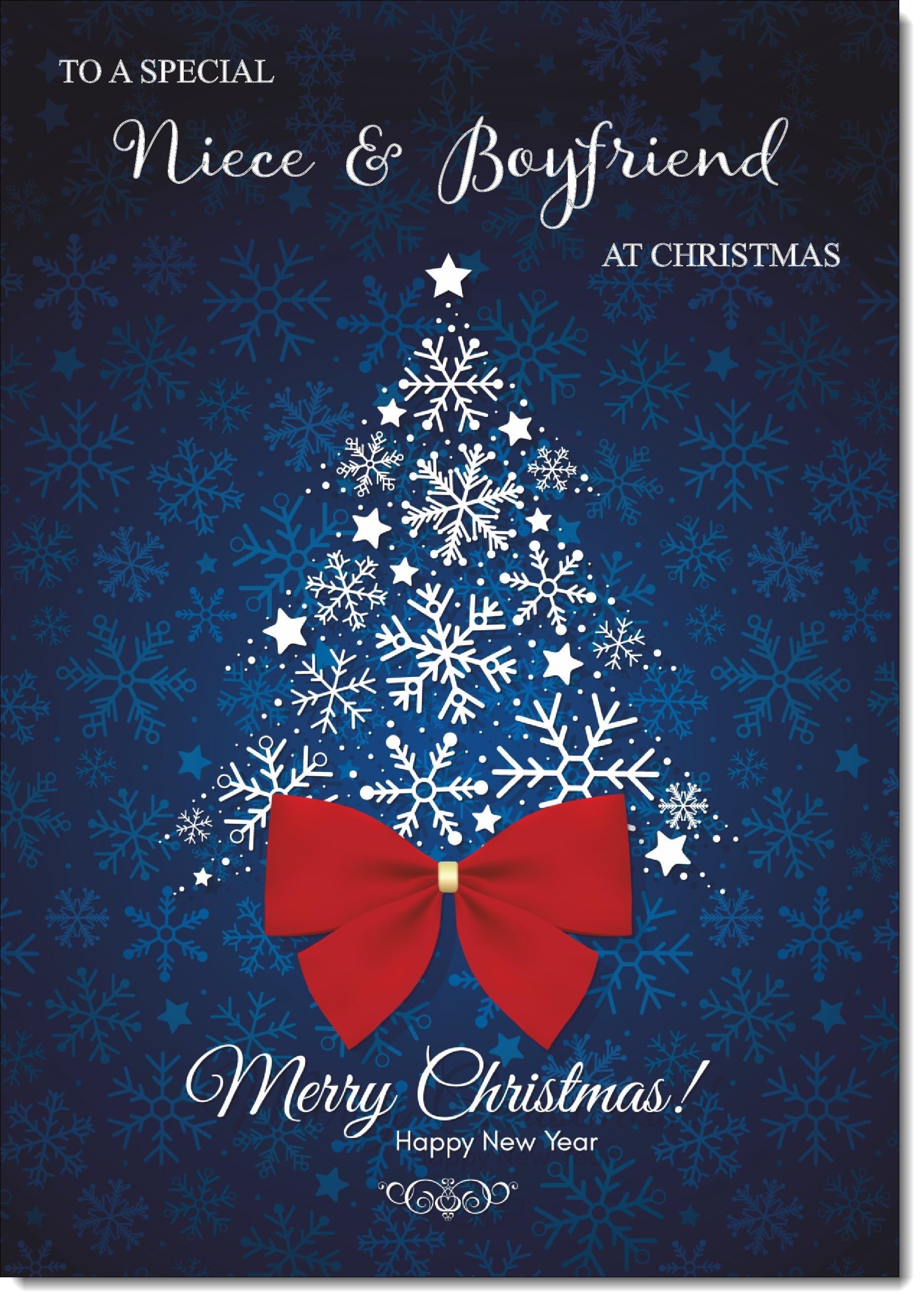 Niece & Boyfriend Christmas Card Blue Abstract Christmas Tree