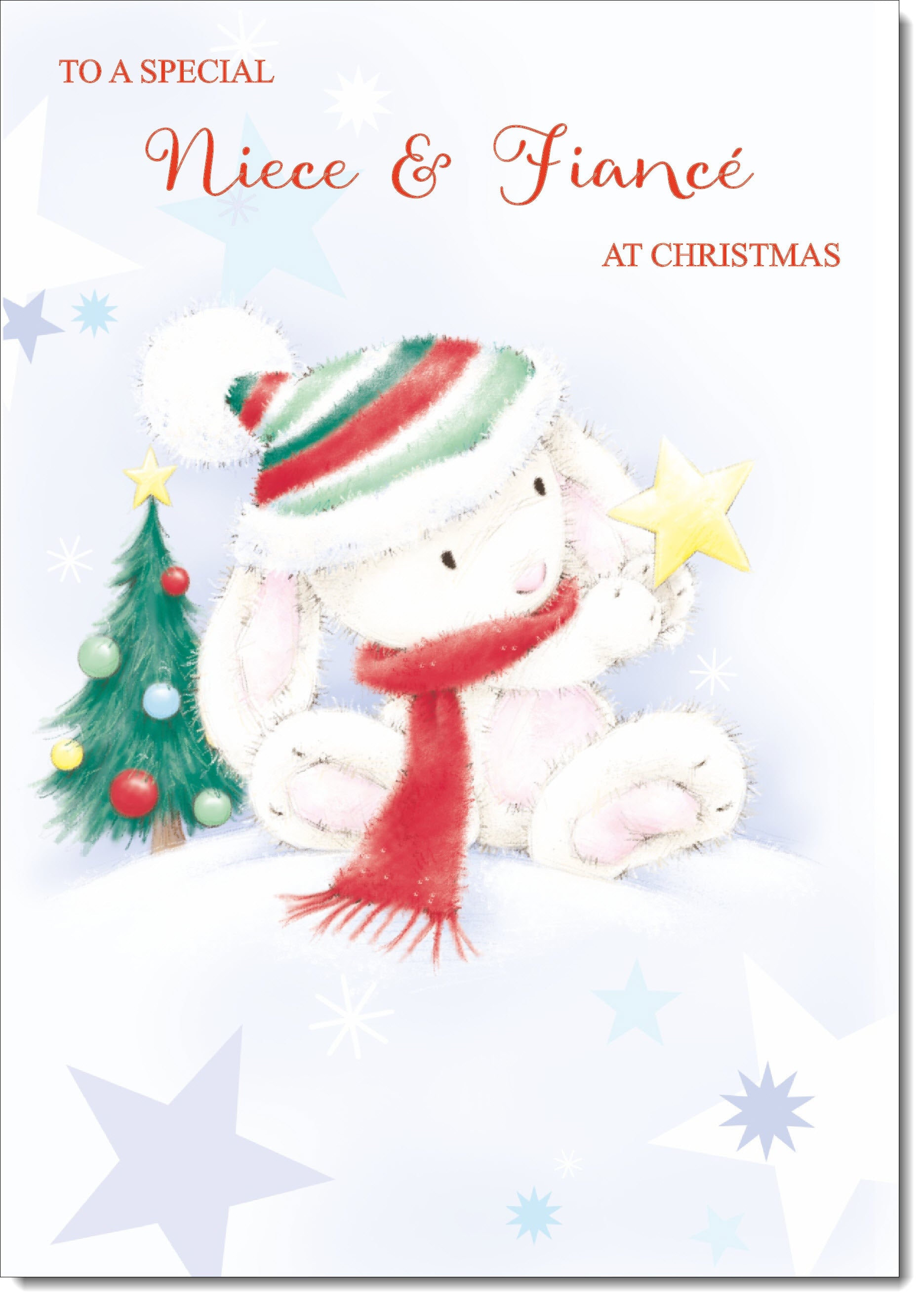Niece & Fiance Christmas Card Cute Rabbit with Star