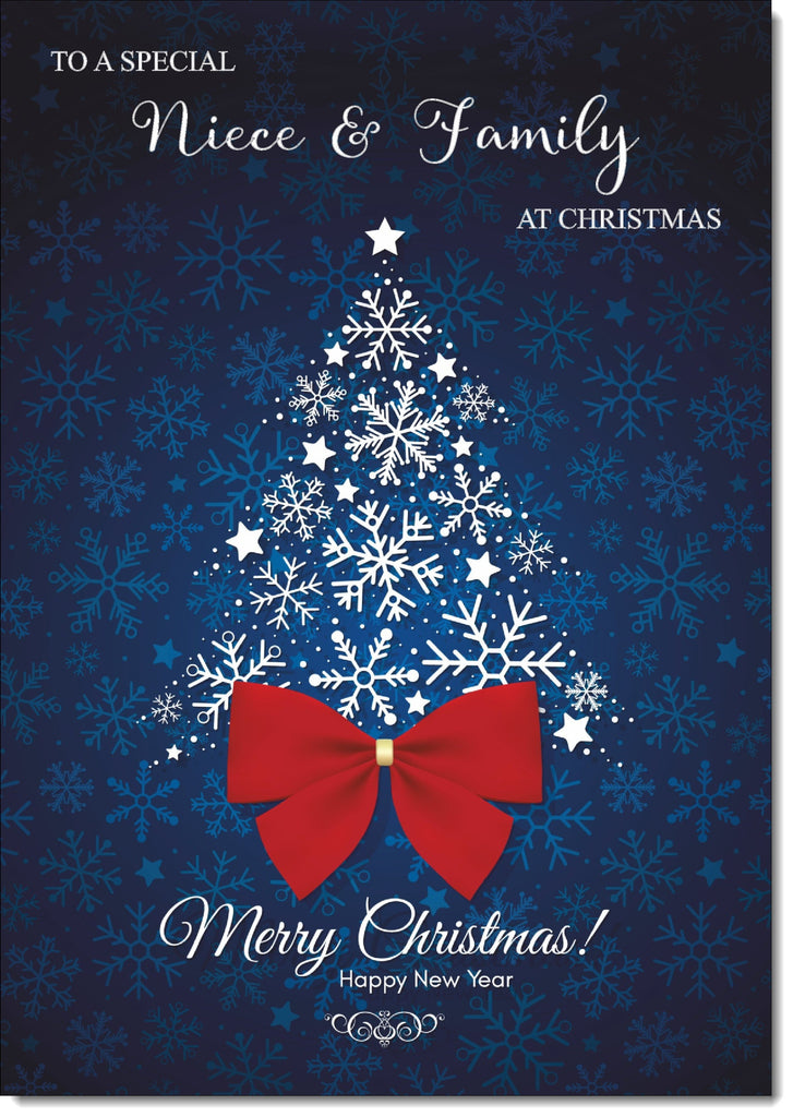 Niece & Family Christmas Card Blue Abstract Christmas Tree