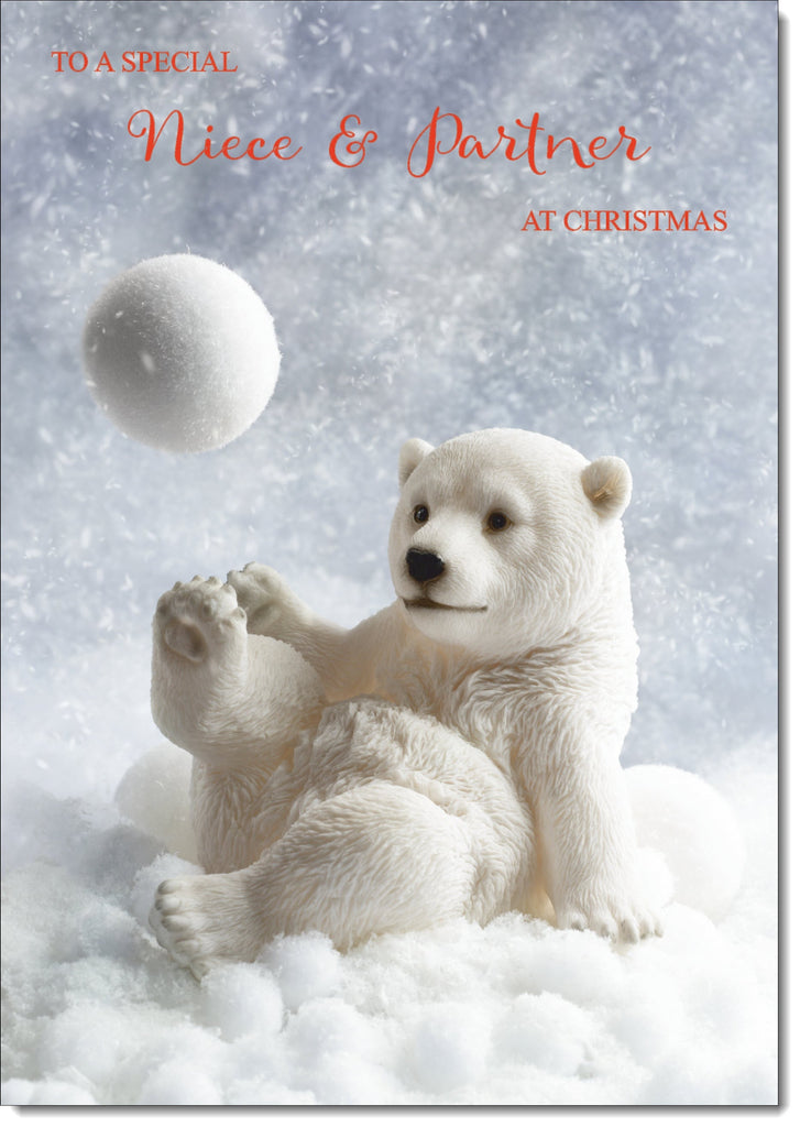 Niece & Partner Christmas Card Polar Bear and Snowball