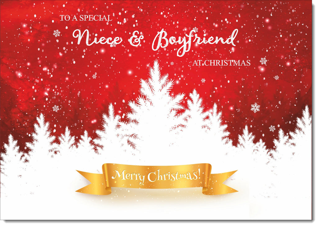 Niece & Boyfriend Christmas Card White Forest with Red Sky