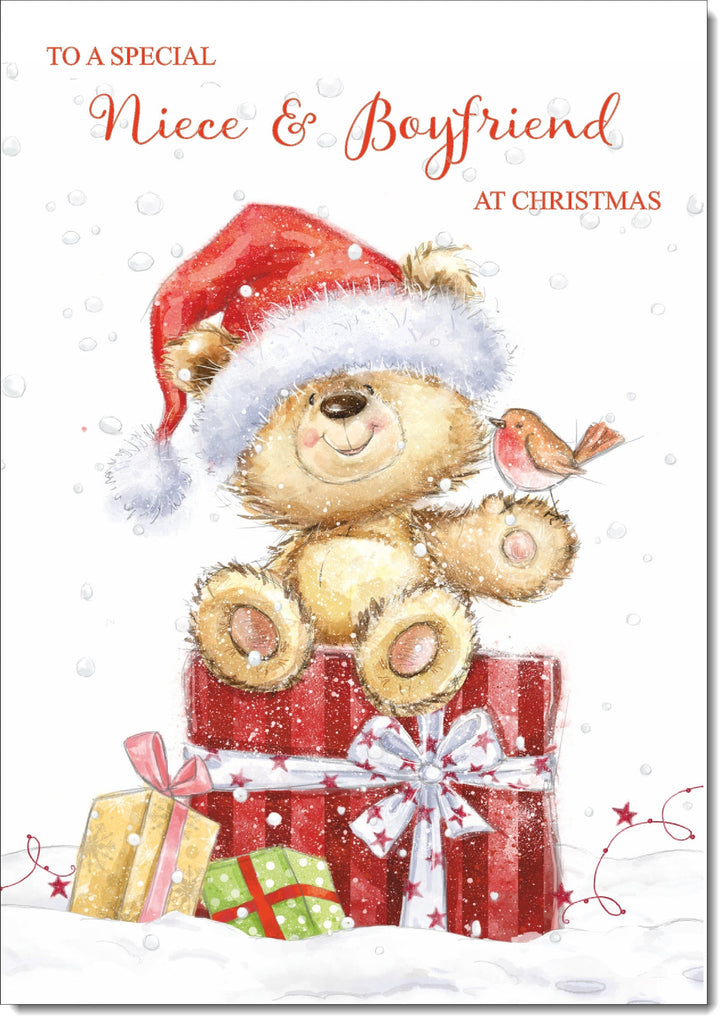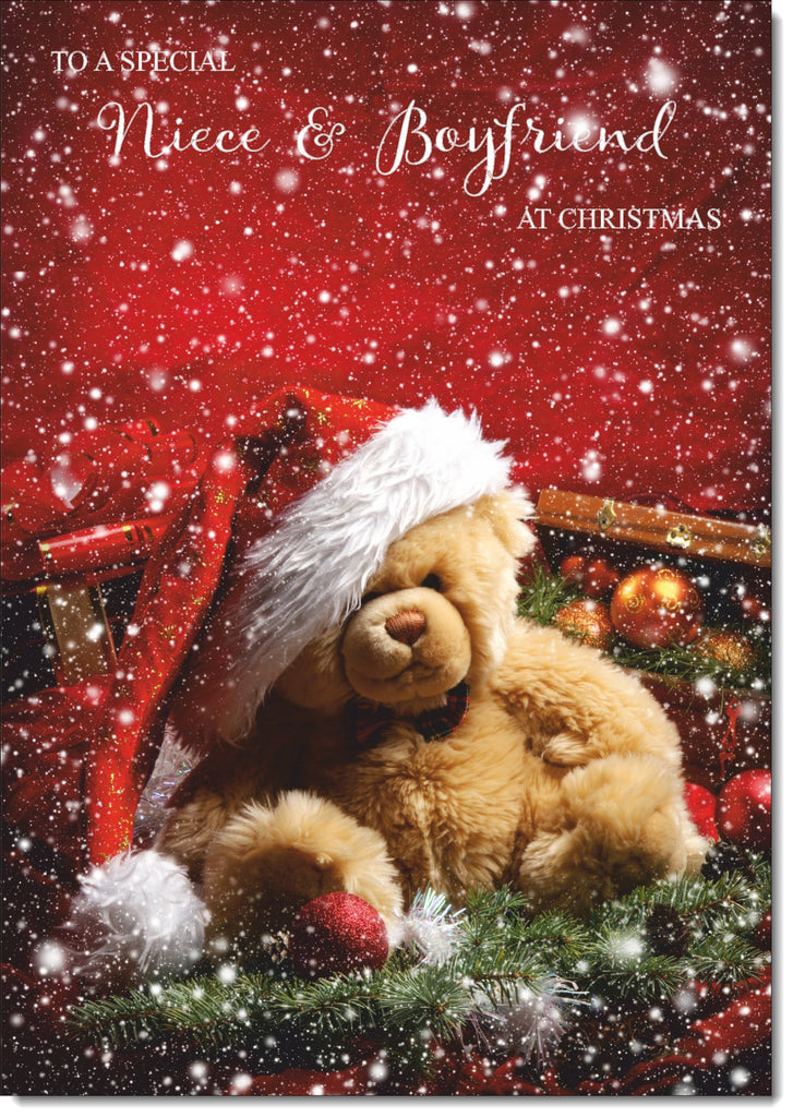 Niece & Boyfriend Christmas Card Teddy Bear in Santa Hat