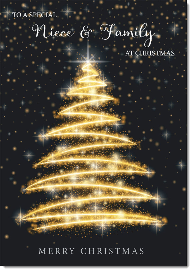 Niece & Family Christmas Card Black and Gold Abstract Tree