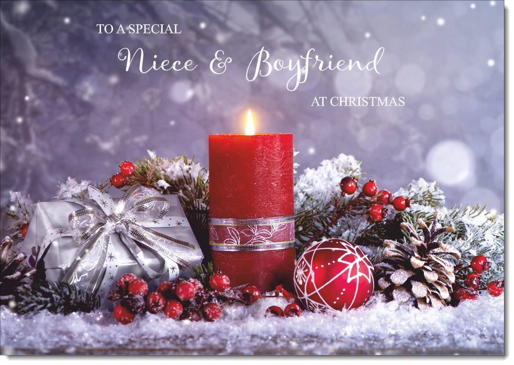 Niece & Boyfriend Christmas Card Festive Red Candle