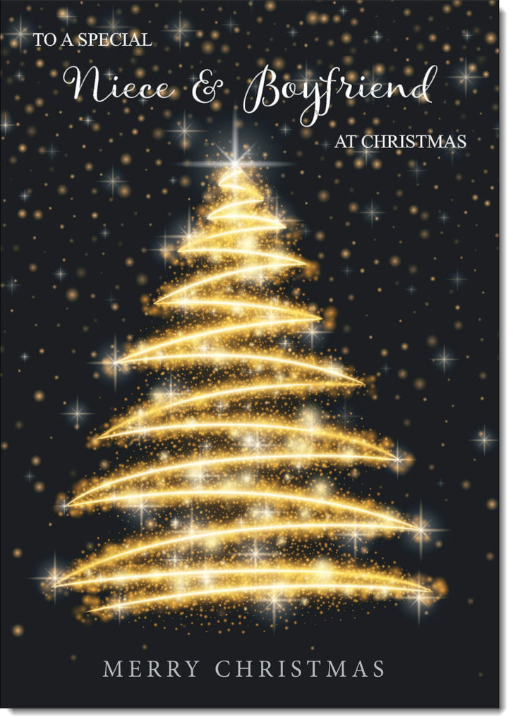Niece & Boyfriend Christmas Card Black and Gold Abstract Tree
