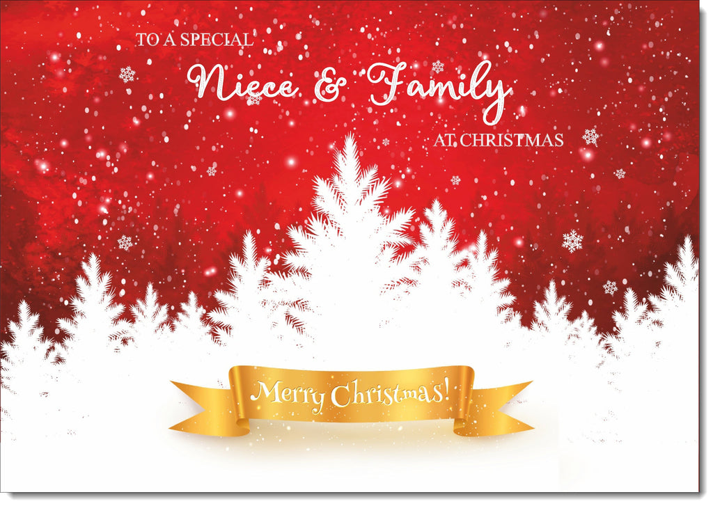 Niece & Partner Christmas Card Red Snowflake Christmas Tree