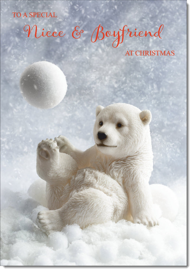 Niece & Boyfriend Christmas Card Polar Bear and Snowball