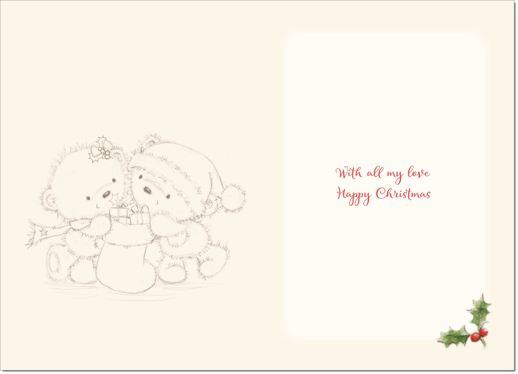 One I Love Christmas Card Cute Bears with Stocking
