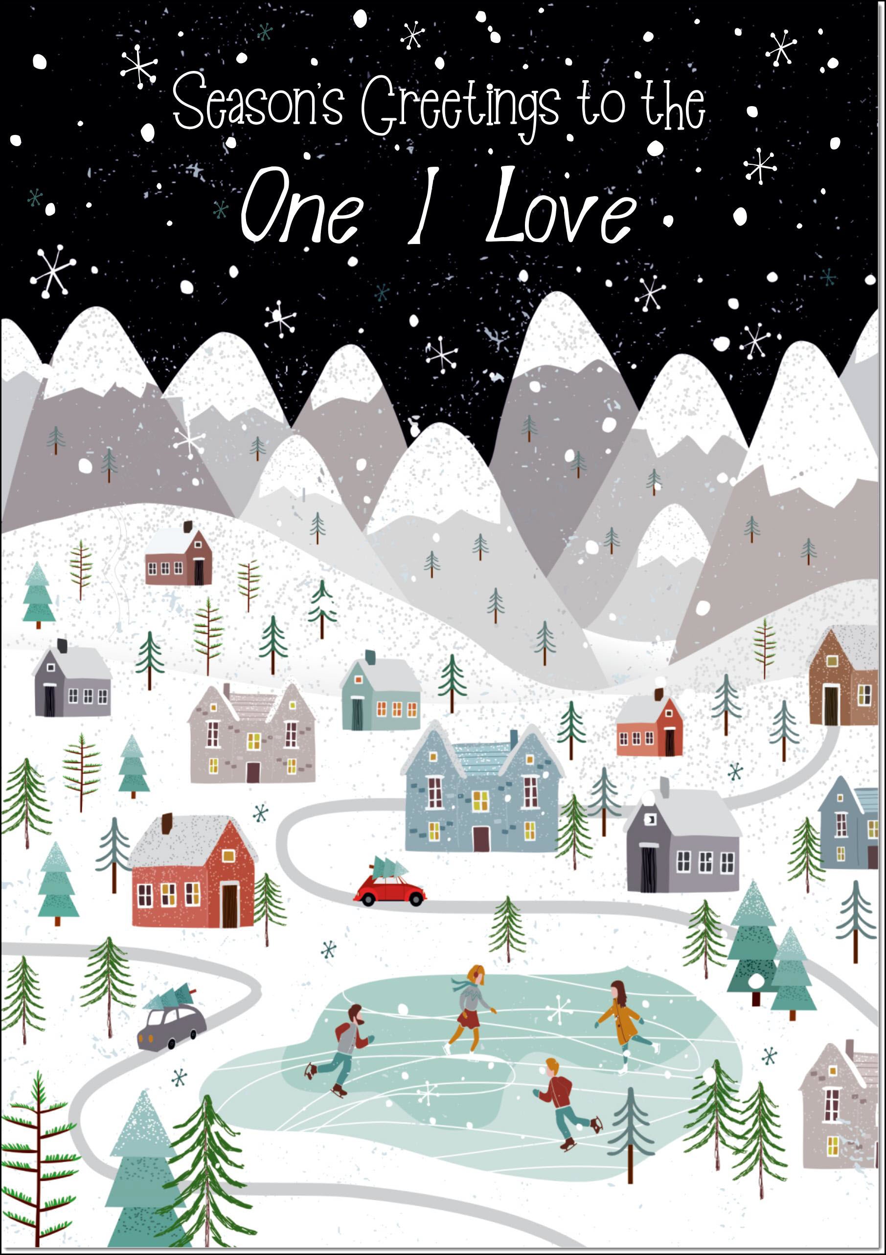 One I Love Christmas Card Mountain Scene In Snowy Village