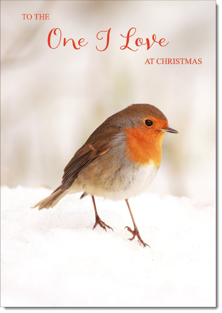 One I Love Christmas Card Robin on Snow