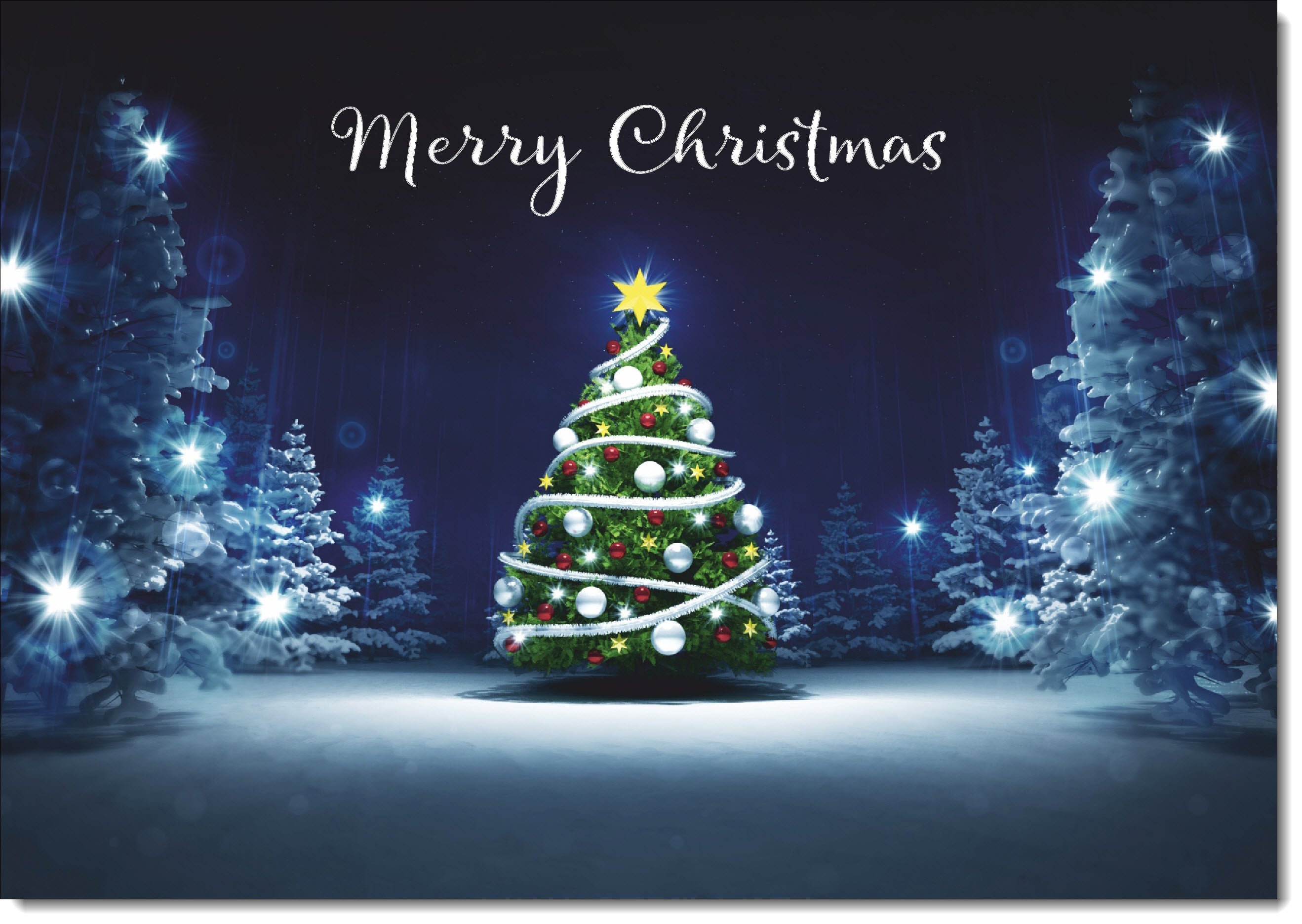 Merry Christmas Card Christmas Tree Lights in Dark Sky