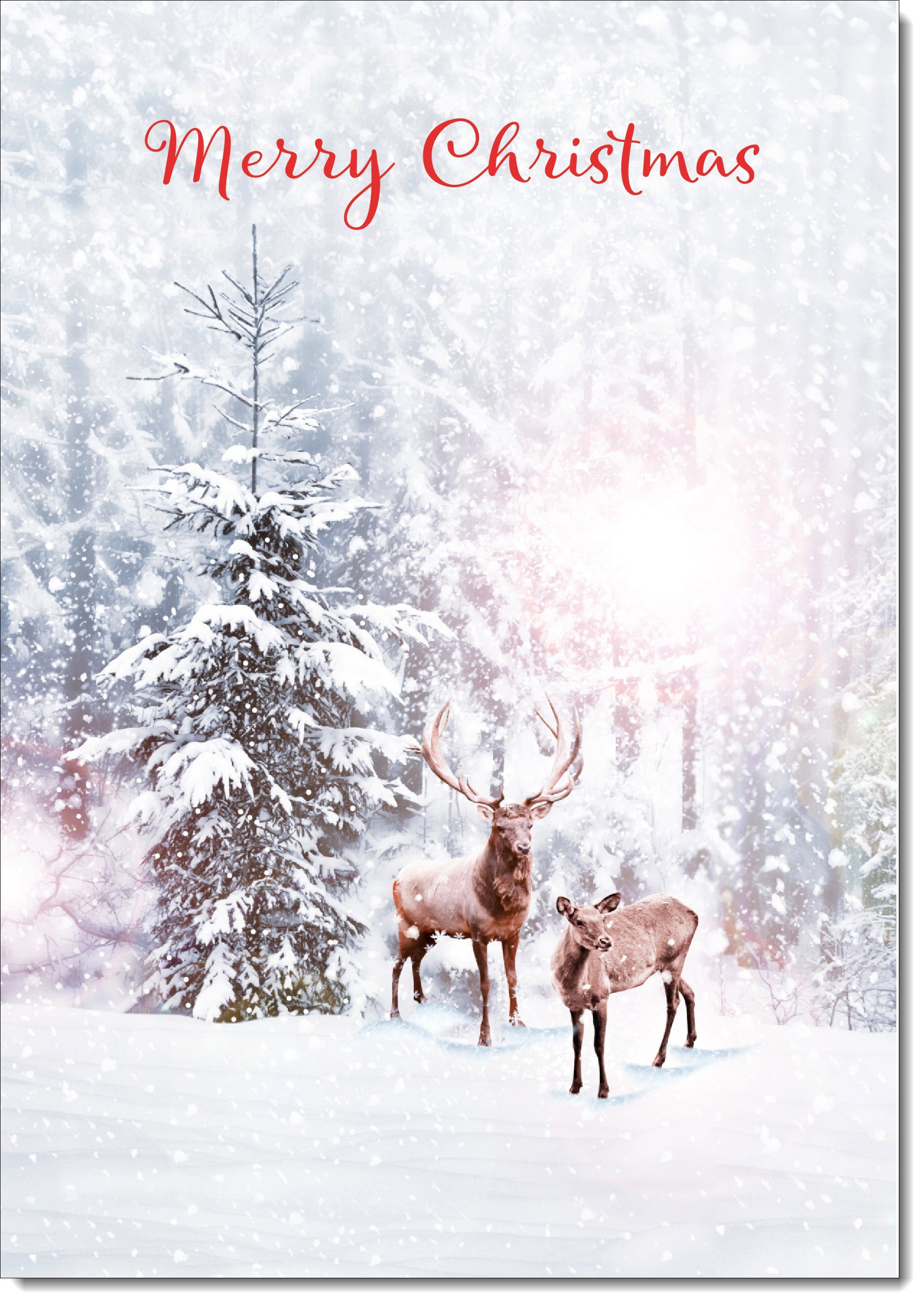 Merry Christmas Card Stag and Doe in Snowy Forest
