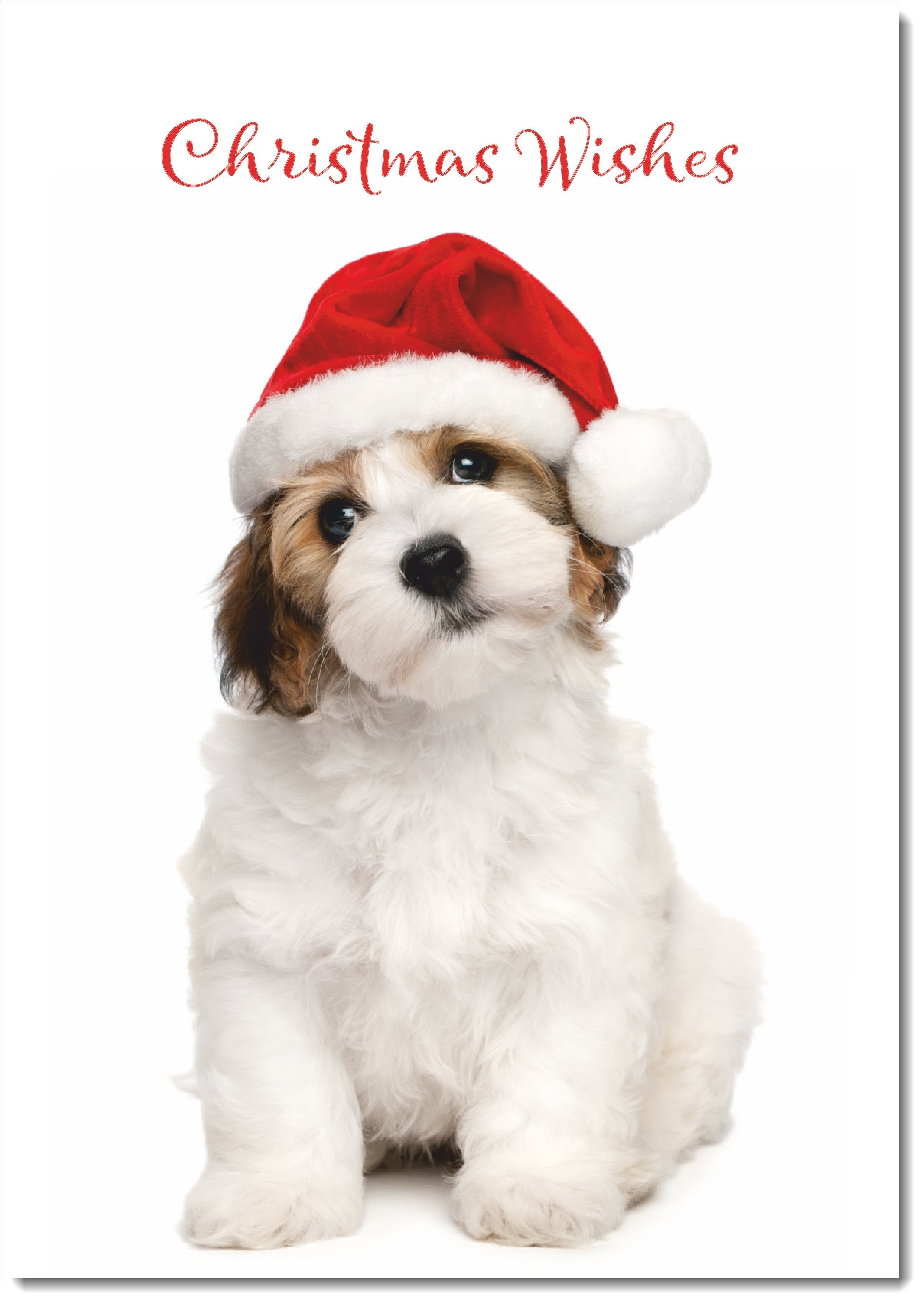 Christmas Wishes Christmas Card Dog and Santa Hat
