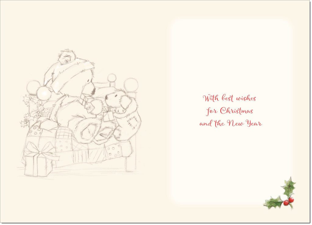 Seasons Greetings Christmas Card Cute Bear on Bed