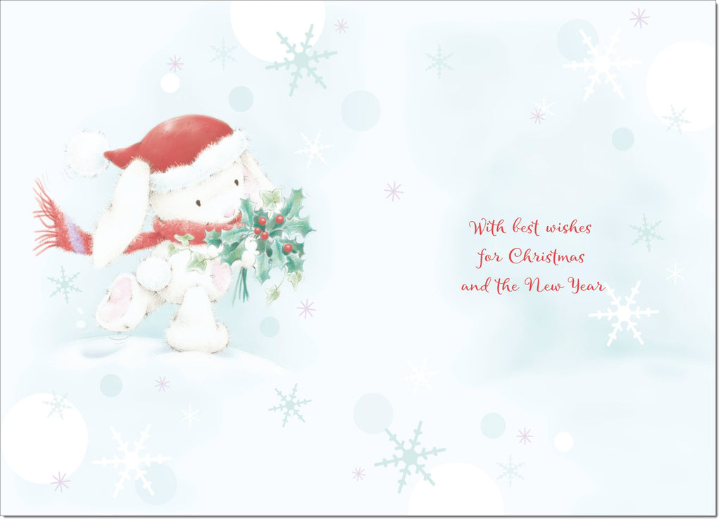 Christmas Wishes Christmas Card Cute Rabbit with Holly